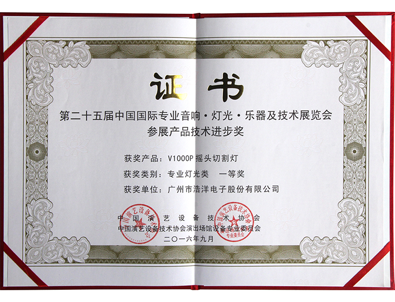 中國演藝設備協會第二十五屆PALM展產品技術進步獎二等獎V1000LT