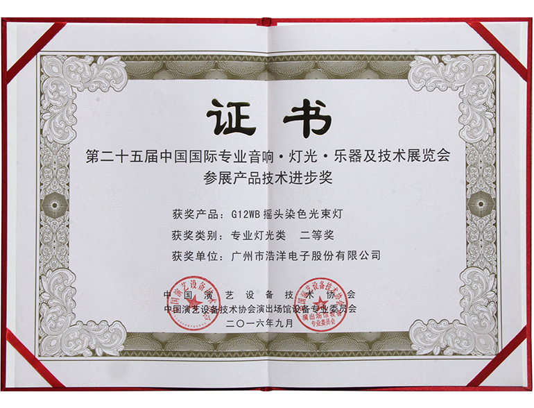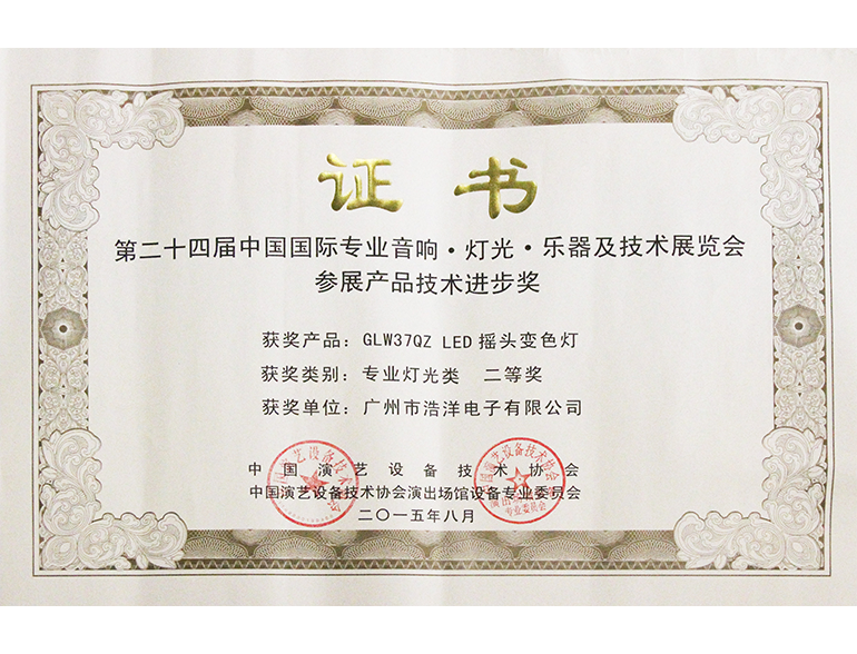 中國演藝設備協會第二十四屆PALM展產品技術進步獎二等獎GLW370Z