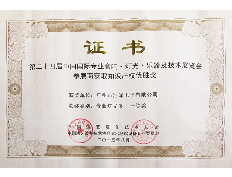 中國演藝設備協會第二十五屆PALM展知識產權優(yōu)勝獎一等獎
