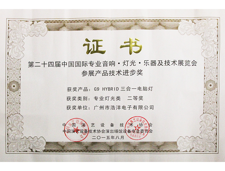 中國演藝設備協會第二十四屆PALM展產品技術進步獎二等獎G9HYBRID