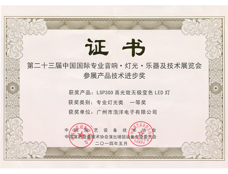 中國演藝設備協會第二十三屆PALM展產品技術進步獎一等獎LSP300