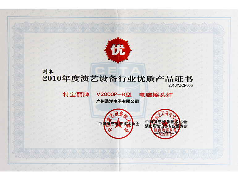 2010年度中國演藝設備行業(yè)優(yōu)質產品V2000P