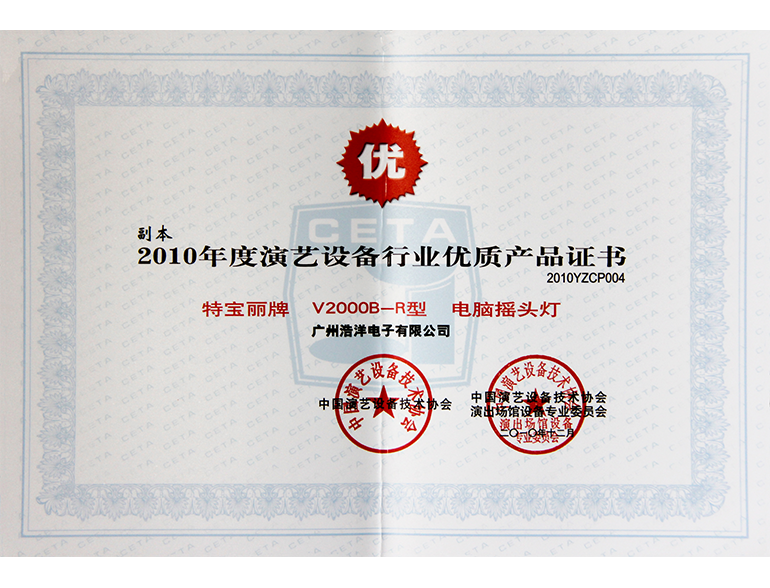 2010年度中國演藝設備行業(yè)優(yōu)質產品V2000B