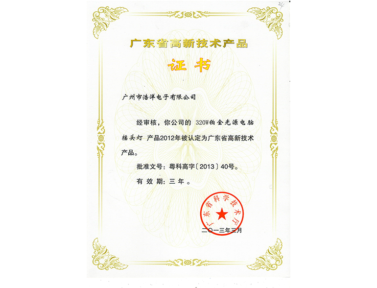 廣東省高新技術產品-320W鉑金光源電腦搖頭燈