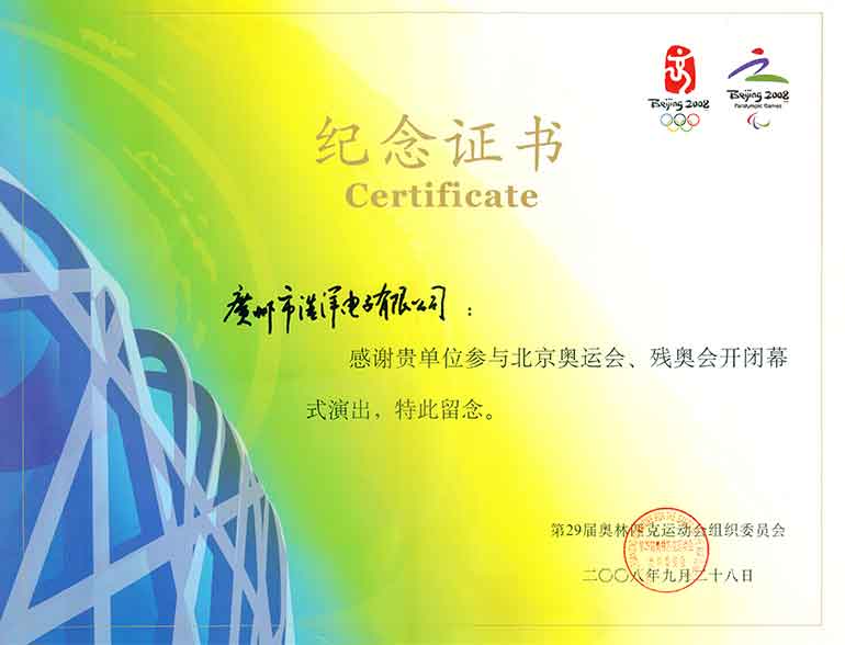 G20二十國集團杭州峰會文藝活動紀(jì)念證書