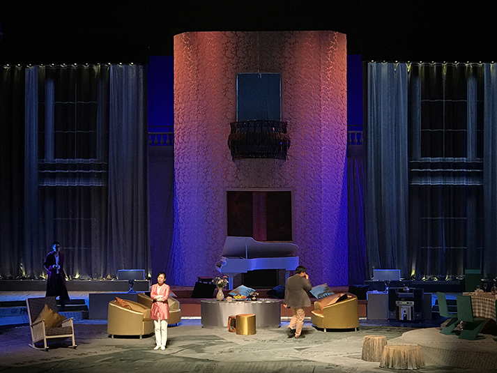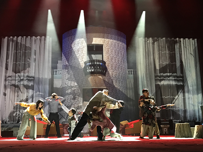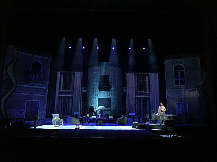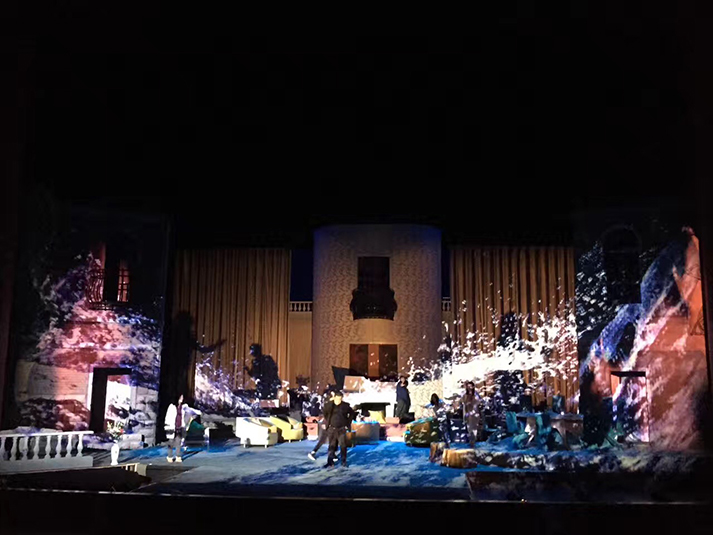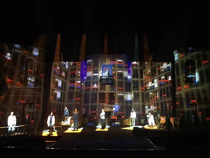該劇有對人物靈魂的拷問、對人性的追問,也有對生命意義的表達(dá),在雄渾凝重的燈光設(shè)計風(fēng)格上,著重呈現(xiàn)劇目的人物塑造。該劇中,LED切割燈GL-6和LED圖案燈GL-5,承擔(dān)了劇目面光和舞臺特效的作用,憑借高亮度、均勻的光斑、全面的功能和穩(wěn)定的運轉(zhuǎn),成功為該劇護航。尤其是LED燈具在調(diào)光、頻閃上更加細(xì)膩線性的表現(xiàn),有助于劇情傳達(dá)更加微妙細(xì)致的情感。另外,天幕燈C5的八色混色,讓色域?qū)拸V、換色細(xì)膩,投光式渲染法使得效果均勻自然、一致性高,渲染劇場氣氛。