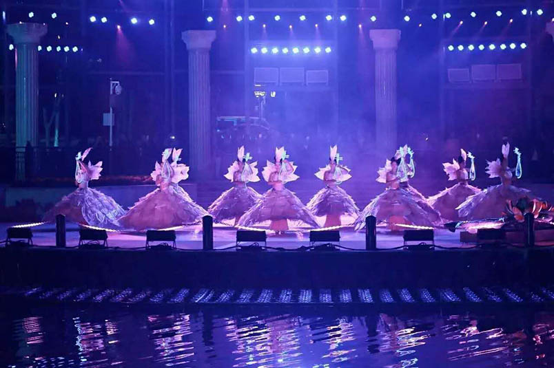 為了打造出槳聲燈影、美輪美奐的演出效果,浩洋燈光的300多臺(tái)三合一電腦燈擔(dān)起了重任,強(qiáng)大的光束、染色與圖案功能組合和極富空間感的藝術(shù)表現(xiàn)力,打造出亦真亦幻的時(shí)空幻境。