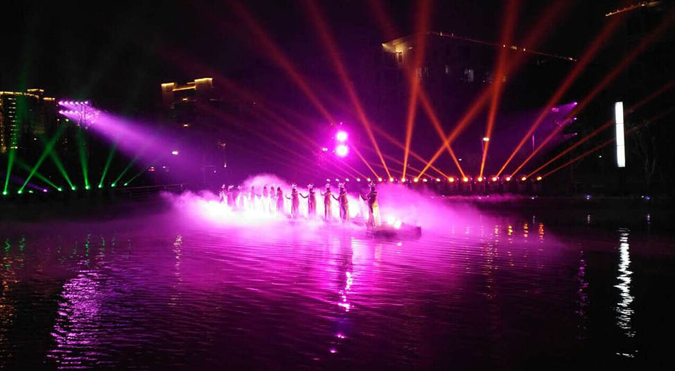 《夢(mèng)回穿紫河》是由湖南省演藝集團(tuán)與經(jīng)山水公司共同整合相關(guān)資源,并集合國(guó)內(nèi)最優(yōu)秀的編創(chuàng)團(tuán)隊(duì),歷時(shí)半年,精心打造的湖南首臺(tái)城市風(fēng)情實(shí)景燈光演出秀。浩洋電子傾力參與打造,承擔(dān)了從系統(tǒng)設(shè)計(jì)、設(shè)備供應(yīng)、安裝實(shí)施、彩排合成到技術(shù)服務(wù)支持的全部燈光工程內(nèi)容,應(yīng)用浩洋電子旗下特寶麗品牌14R及20R三合一電腦燈、圖案切割燈PT801P、LED PAR燈A59、防水罩WP06等近500臺(tái)專業(yè)燈光產(chǎn)品,通過(guò)燈光設(shè)計(jì)與演出內(nèi)容的緊密結(jié)合,巧妙地將的唯美絢麗的燈光與旖旎的穿紫河水融為一體,為游客呈現(xiàn)了一場(chǎng)具有濃郁水鄉(xiāng)風(fēng)情及豐厚人文底蘊(yùn)的光影藝術(shù)饗宴?!秹?mèng)回穿紫河》的精彩首秀,接連獲得社會(huì)各界的高度好評(píng)!