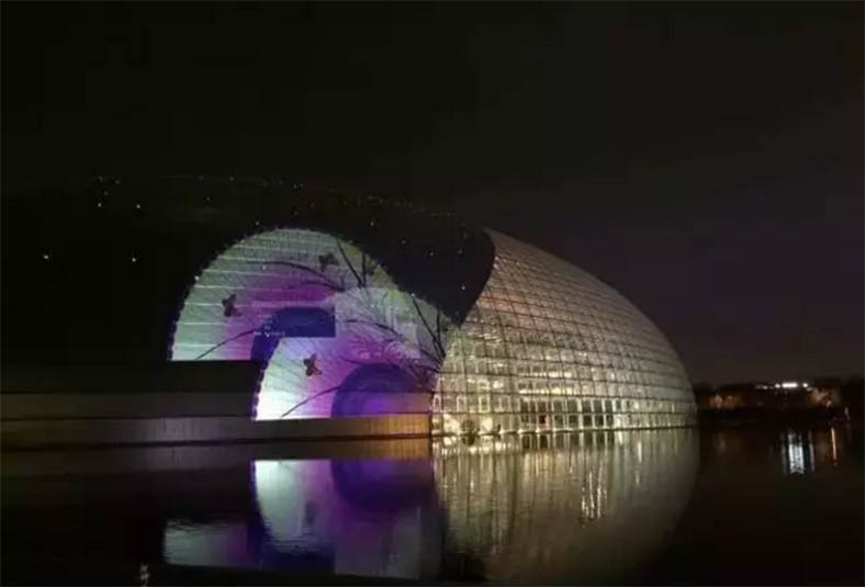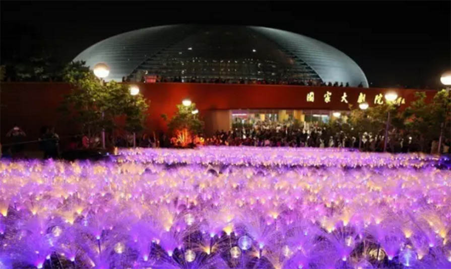 晚會(huì)當(dāng)晚,國(guó)家大劇院殼體、水面,及周邊建筑被集體打亮,其場(chǎng)面宏大、氣勢(shì)非凡。國(guó)家大劇院在三種顏色的基礎(chǔ)上,增加至8種燈光顏色循環(huán)變換,北門處增加了“花海”燈光裝飾效果,呈現(xiàn)燈光璀璨的壯觀場(chǎng)面。