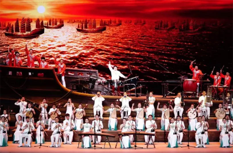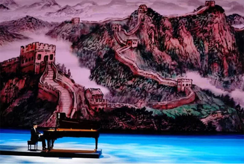 整場(chǎng)文藝晚會(huì)具有東西方交融、歷史和未來(lái)交融、傳統(tǒng)和科技交融以及不同藝術(shù)間交融,多種交融的觀點(diǎn)和方法始終貫徹到每個(gè)主題。器樂(lè)和戲曲的生動(dòng)表演展示中華文化底蘊(yùn)和輝煌歷史,青花絲綢與芭蕾藝術(shù)結(jié)合、鋼琴與繪畫(huà)相結(jié)合體現(xiàn)中外藝術(shù)有機(jī)融合和創(chuàng)新,彰顯文化自信,聚盛世中國(guó)之璀璨,展“一帶一路”之風(fēng)采。