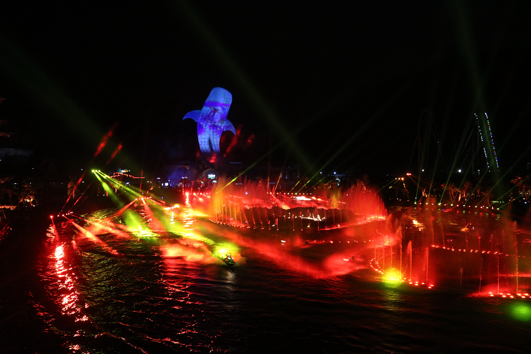 這是一場(chǎng)集無人機(jī)、煙花表演、燈光秀、激光秀、噴泉匯演、水上飛人、摩托艇特技等元素的震撼視覺盛宴,炫酷的燈光與幻彩的煙花點(diǎn)亮了整個(gè)海洋王國(guó)的夜空。浩洋燈具以品質(zhì)穩(wěn)定、功能完善、高亮度輸出、色彩效果豐富等特點(diǎn)完美完成了燈光演出,炫麗的光束伴隨著音樂舞動(dòng),在黑夜中劃出美麗的弧線,讓現(xiàn)場(chǎng)觀眾體驗(yàn)光束伴隨著強(qiáng)勁音樂節(jié)奏所締造出的燈光波浪,其出色的燈光科技表現(xiàn)手段贏得了長(zhǎng)隆集團(tuán)的深度肯定及認(rèn)同。