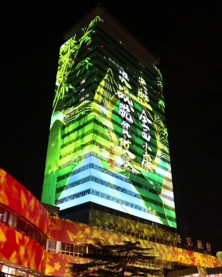 2020年的視覺創(chuàng)意燈光秀內(nèi)容共分為四個(gè)篇章,畫面制作融合了媒體科技、國(guó)事熱點(diǎn)、以及中華民族春節(jié)的傳統(tǒng)元素。畫面色彩多樣、內(nèi)容豐富、創(chuàng)意獨(dú)特、配合樓體上的投影設(shè)備及室外照明燈具營(yíng)造了一場(chǎng)充滿春節(jié)喜悅氣氛的視覺創(chuàng)意燈光秀。