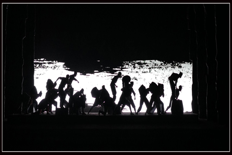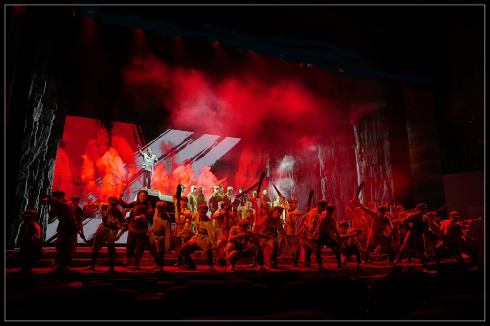 舞臺劇中 “交互式”的藝術(shù)表現(xiàn)形式,涵蓋了話劇、舞劇、舞臺美術(shù)、音樂、音響、多媒體、燈光等一系列在其中,讓劇目更具有生命力,更具有視覺感官沖擊,能夠?qū)v史重現(xiàn)在觀眾的眼前,呈現(xiàn)一個逼真的全維度感官場景。