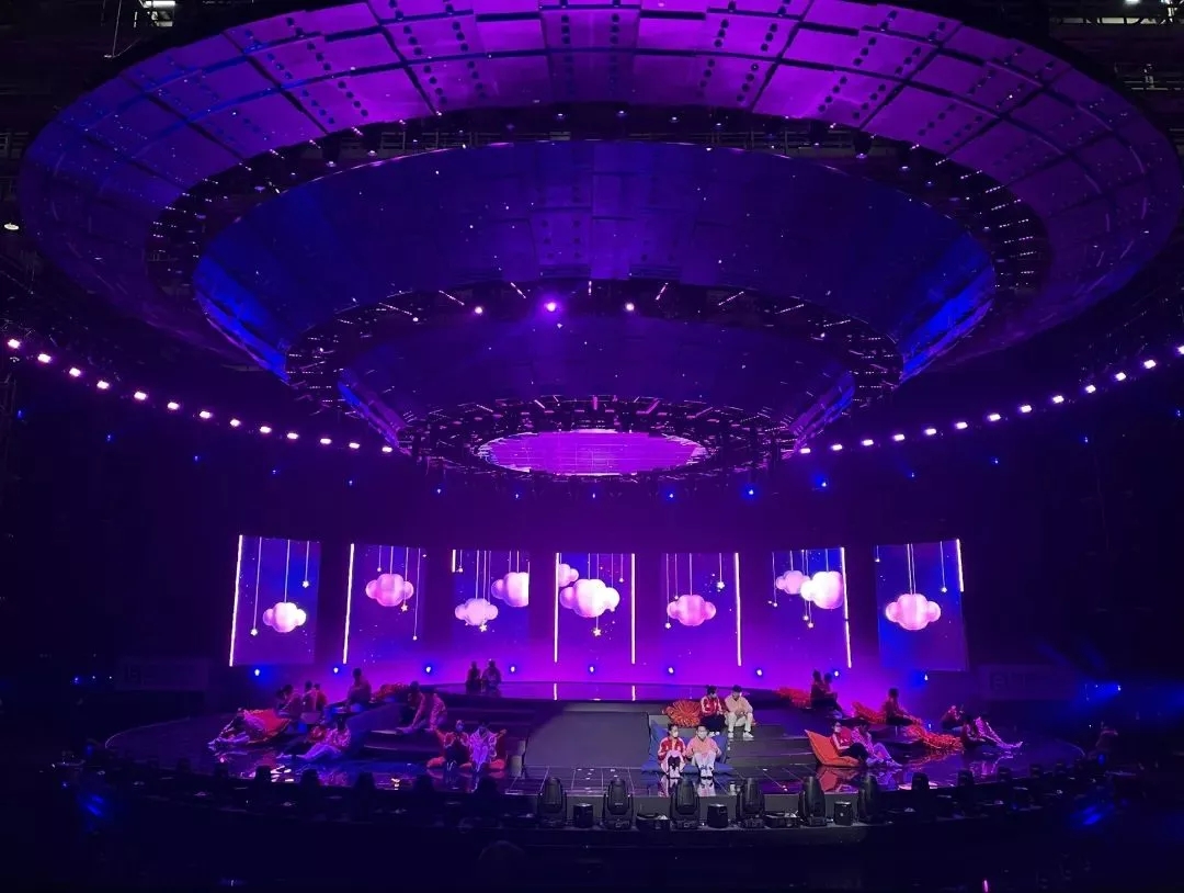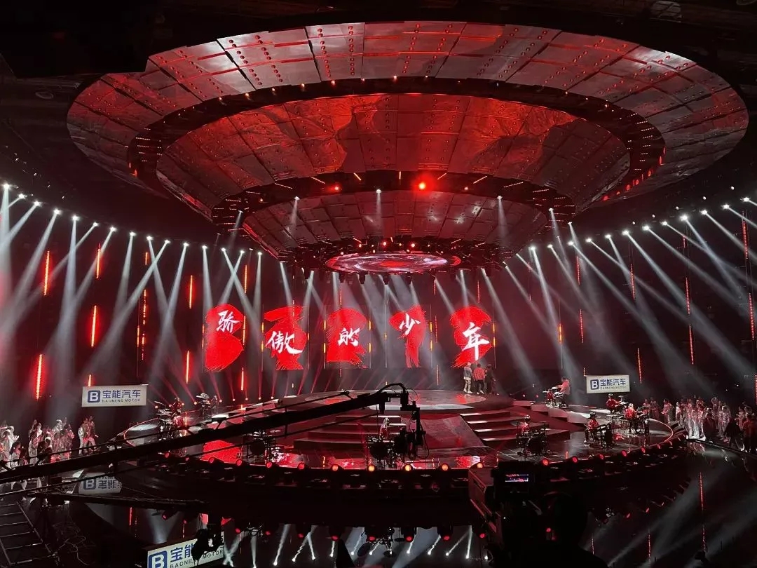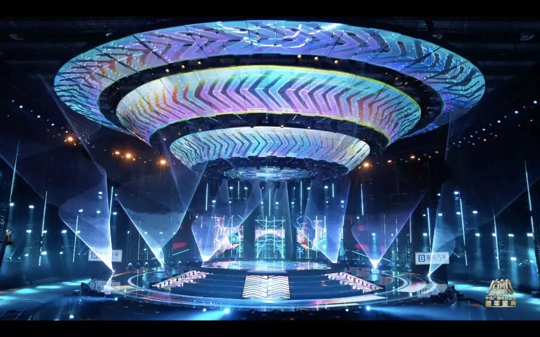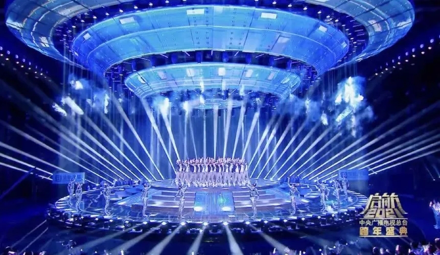 這次盛會的燈光設(shè)計圍繞“啟航·看中國”主題設(shè)計出一艘360度的太空飛船,燈光設(shè)計在此基礎(chǔ)上將太空飛船進行了270度的視覺包裹,將主背景設(shè)計為矩陣燈墻,為舞臺整體視覺提升高度。
