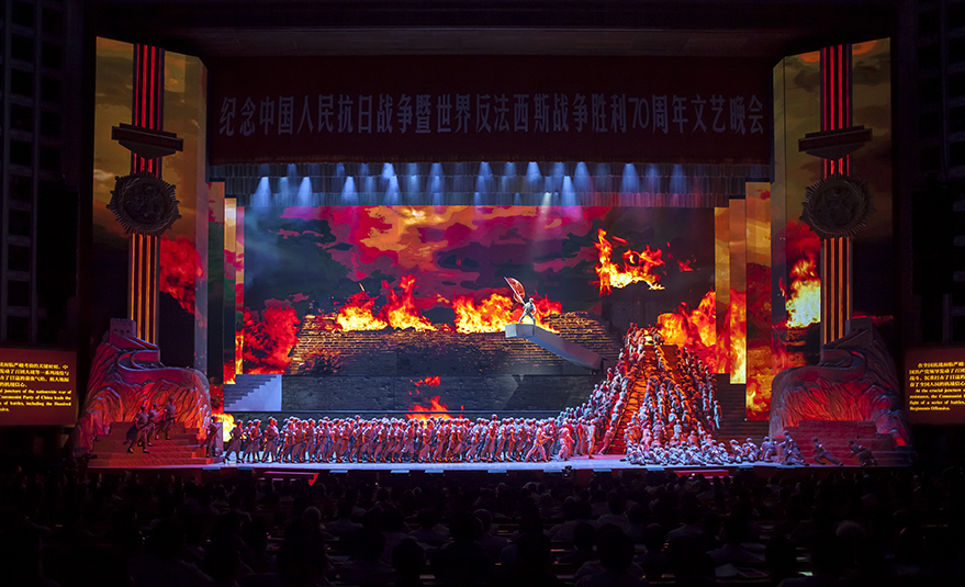 此外,于9月3日晚,在京的中央領導同志與出席抗戰(zhàn)勝利70周年紀念活動的各國元首、部分外國政要、國際組織代表,抗戰(zhàn)老戰(zhàn)士老同志的代表及首都各界代表,共計6000余人將出席以“勝利與和平”為主題的抗戰(zhàn)勝利70周年文藝晚會。浩洋電子以自主品牌特寶麗的V2000W,1500W 搖頭染色;V3000P 1500 徹割成像電腦燈;G10 Hybrid三合一全能王電腦燈;OK370Z Led 搖頭染色;PT320B 搖頭光束電腦燈為抗戰(zhàn)勝利70周年增加色彩,讓過去的歷史在浩洋的燈光海洋中展現出恢弘大氣、氣勢磅礴、震撼人心的史詩性藝術效果!!!
