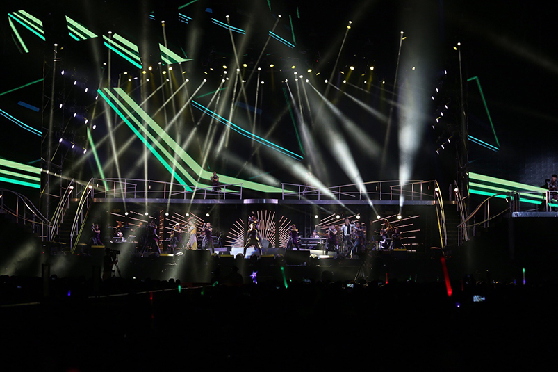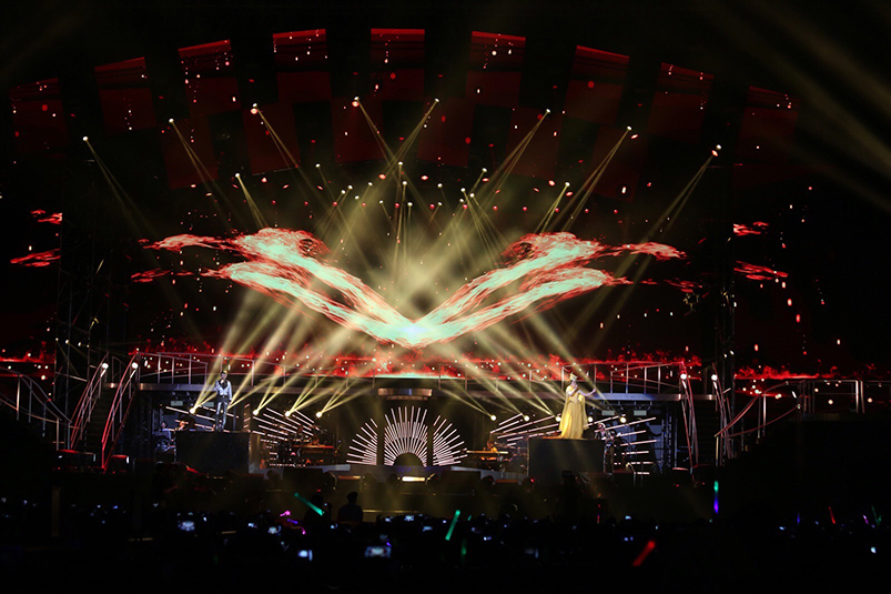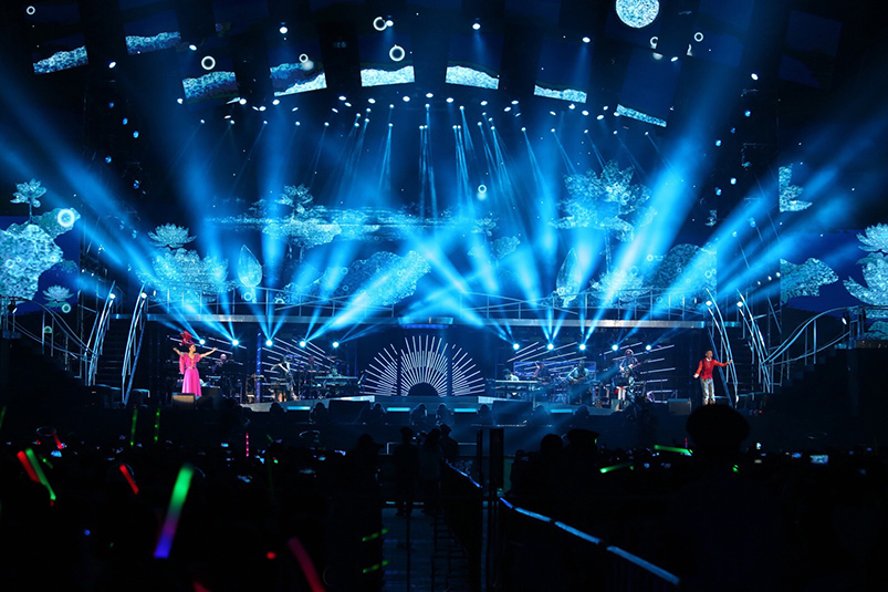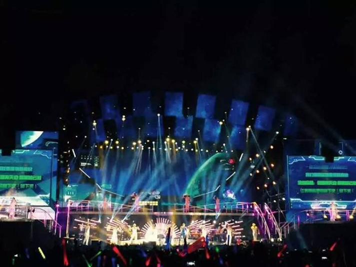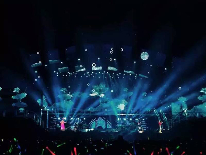 在整場演唱會的舞臺燈光部分,設計團隊特別選用了浩洋電子鉑金16R染色燈PT330W,利用 PT330W光線細膩、色彩柔和及染色均勻等特點和均勻的CMY效果,為現(xiàn)場烘托呈現(xiàn)絢爛,暖心,又大氣磅礴的舞臺畫面。