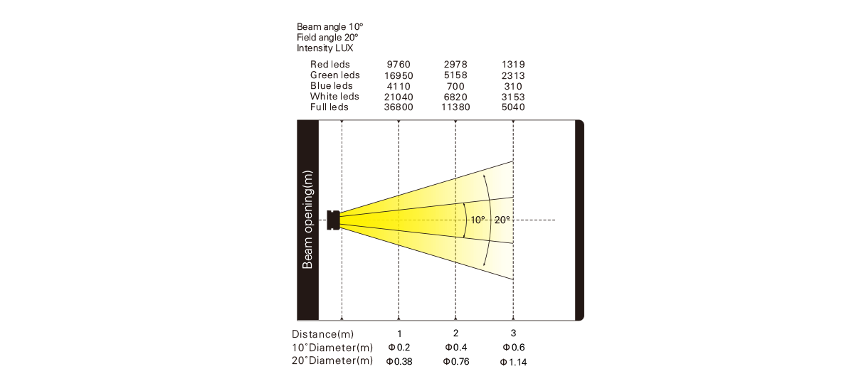 5種通道模式:4/5/6/8/36個國際標(biāo)準(zhǔn)DMX512通道