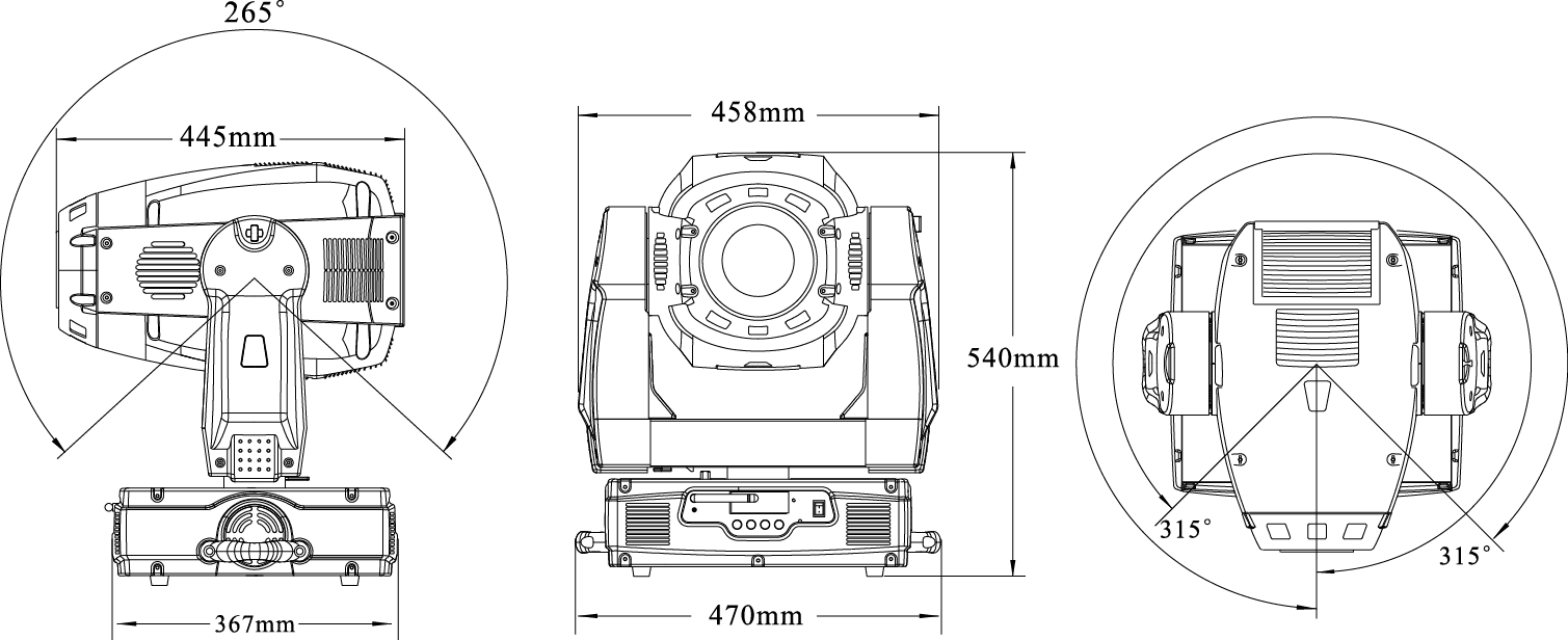 可從控臺(tái)完成更改DMX地址碼,遙控開(kāi)關(guān)燈泡,機(jī)器重設(shè),聲控模式的轉(zhuǎn)換等功能