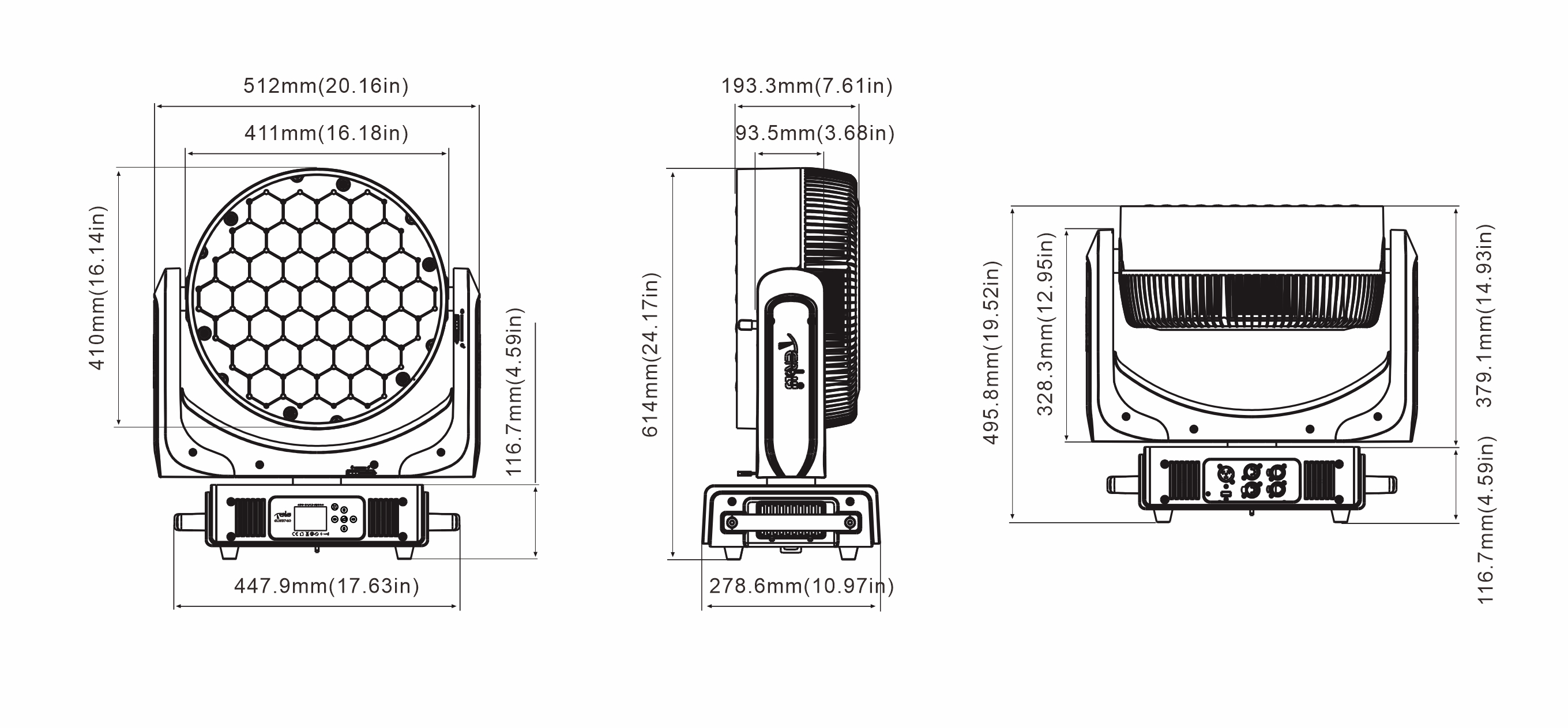 可從控臺完成更改DMX地址碼,遙控LED,機(jī)器重設(shè)等功能