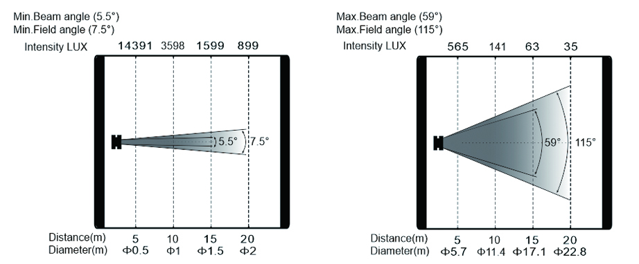 變焦范圍:光束角:5.5°-59°,光斑角:7.5°-115°