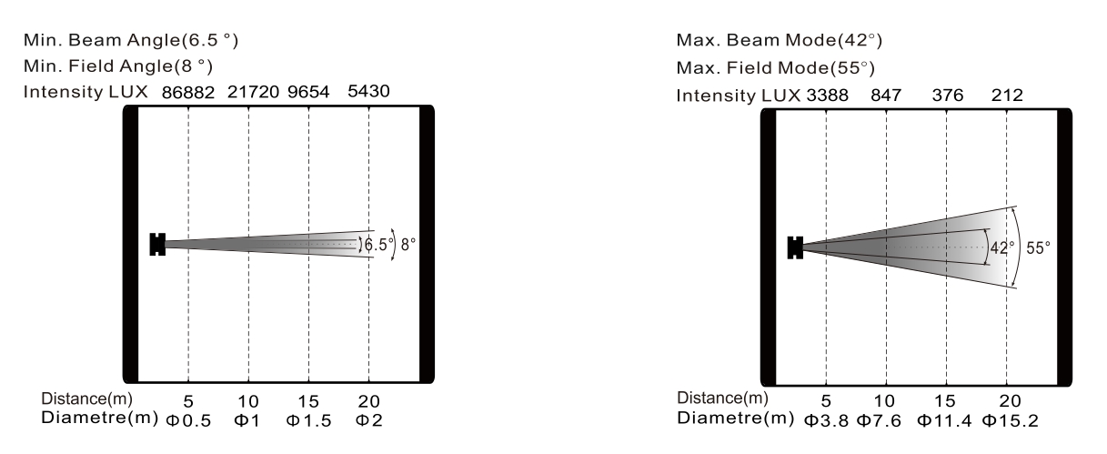 變焦范圍:光束角:6.5°-42°,光斑角:8°-55°