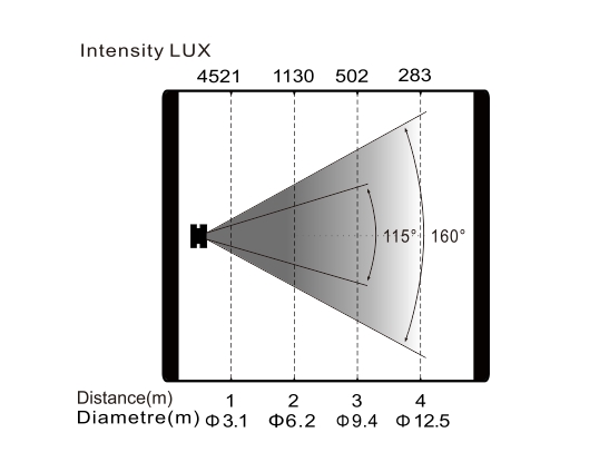 變焦范圍:光束角:115°,光斑角:160°
