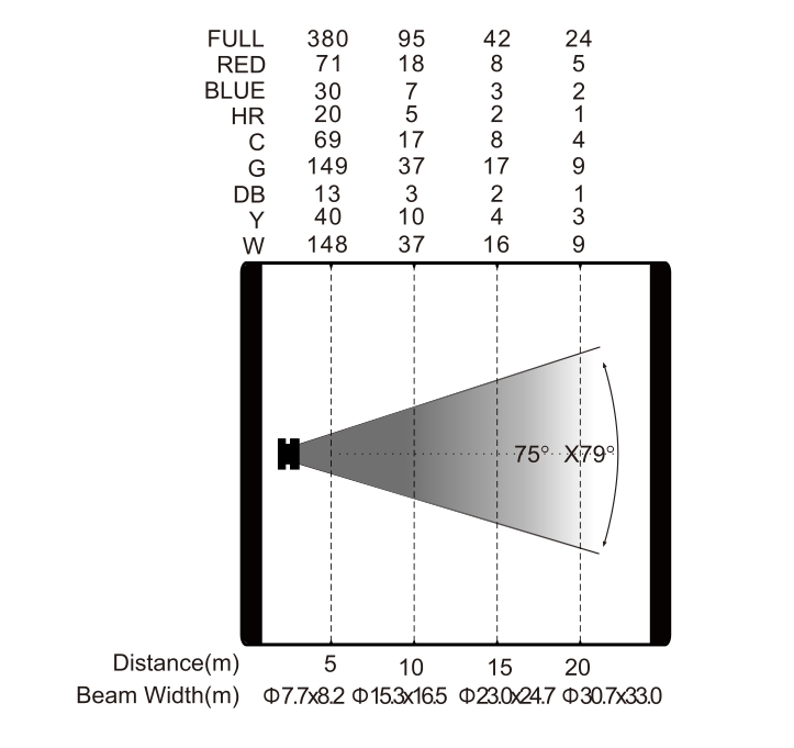 變焦范圍:光束角:44°x46°,光斑角:75°x79°